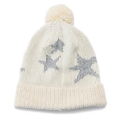 ポンポンつきオーガニックコットン 星柄ニット帽