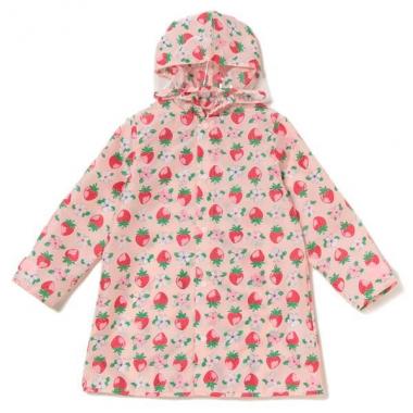 雨の日もおしゃれに過ごせる、総柄デザインのレインコートです。フードをかぶっても前が見えるよう、フチをクリア素材で切り替えているのが高ポイント♪ 袖をしぼるベルトに反射テープをつけるなど、機能的なディテールが魅力です。本体とおそろいの巾着がセットになっており、かわいく持ち運べます。ピンクはイチゴ&お花柄、ブルーは乗り物柄とカラーによってパターンが異なります。水をはじきやすくなっております。※水洗いではっ水効果がなくなります
