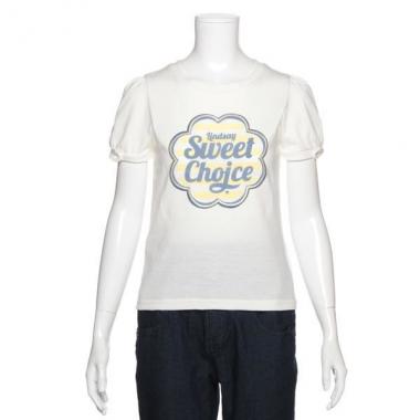 キャンディーのパッケージを連想されるポップなプリント入りで、スタイルの主役になるTシャツです。明るいカラーリングや、チュール素材のアップリケが女の子らしく見せるポイント♪ リボンつきのパフスリーブもガーリームードを盛り上げます。※ボトムスは参考商品です