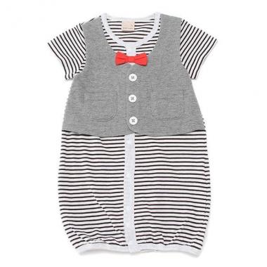 蝶ネクタイとベストをコーデしているようなデザインで、おしゃれなスタイリングが一着で完成するカバーオールです。股下の留め方次第で着方に変化をつけられる、2WAY仕様がうれしいところ♪ オフホワイトはボーダー×無地、黄は無地×チェックと、カラーによってパターンが異なります。