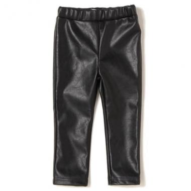 フェイクレザー仕立てで、スタイルをクールに演出するスキニーパンツです。シルエットを細身に仕立てたこちらは、ボリュームのあるトップスともバランスを取りやすく、使い勝手も良好♪ コーデの印象をキリッと引きしめるアイテムです。※内側にお名前タグつき