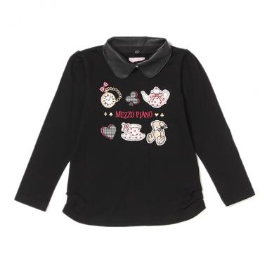 メゾ ピアノ mezzo piano フェイクレザーティペットつきTシャツ