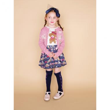 ファッション雑貨やテディベアなどをモチーフにした、キュートな総柄が乙女心をくすぐるタックスカートです。裾へ波形のブレードをあしらい、細部まで愛らしい仕上がりに♪ ウエストはアジャスターゴムで程良いサイズ感に調節できます。右側にはポケットつきです。
