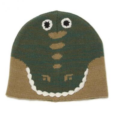 背中のギザギザや目など、所々に立体感をプラスしたアニマルモチーフのニット帽。どんな動物か想像力をかきたてる様な、ユニークなデザインが魅力です。メランジカラーで素朴な風合いを演出。スタイリングのお洒落なワンポイントとして活躍するアイテムです。