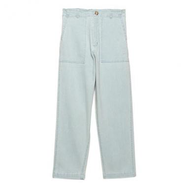 フロントにスクエア型、バックにフラップ型のポケットを配した、ワークテイストのテーパードパンツです。ディテールを際立てる要所のステッチがポイント♪ カジュアル感あふれるルックスで、デイリーに気兼ねなく使えます。