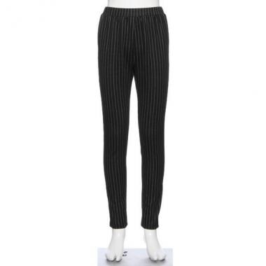 モノトーンのストライプ柄デザインで、大人っぽくはきこなせるレギンスパンツです。フィット感のある細身のシルエットは、ボリューミーなトップスとも相性バツグン♪ バックにアウトポケットがついているのもうれしいポイント。