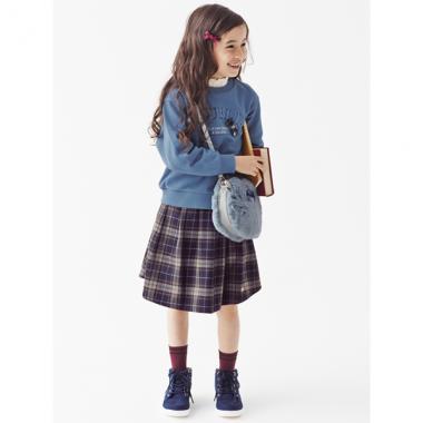 オーセンティックなデザインで使い勝手の良い裏毛トレーナーです。チェック柄のミニリボンをオンしてシンプルなルックスにキュートなディテールをプラス♪ アイテムを選ばずに着まわせる一枚です。ボトムは参考商品です。※ジュニアサイズあり、品番:4983216