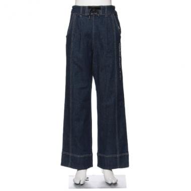 ユニークなステッチの入れ方で他と一味違うデニムです。レースアップデザインをオンしてカジュアルの中にちょっぴり甘さをプラス♪ ワイドシルエットを引き立たせるタックインスタイルがおすすめ。ウエストはアジャスターゴムで調節可能です。