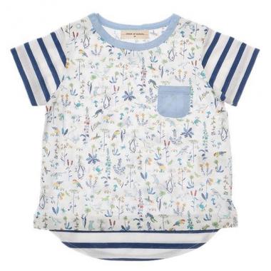 一枚でレイヤード風のスタイルが完成するお洒落なTシャツです。色とりどりの動物や植物などがプリントされたリバティ柄を採用しています。胸元にポケットをあしらいアクセントを付けました。お部屋着や普段使いにおすすめです♪