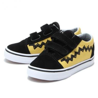 手書き風のラインが印象的なPEANUTSコラボのスニーカーです。VANSスニーカーのクールさはそのままに、愛らしいアクセントをきかせています。ストラップは面ファスナーなので、お子様でも脱ぎはきが楽々。コーデしやすく、デイリーに活躍します。
