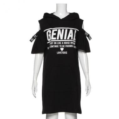 ラブトキシック Lovetoxic 【51%OFF】ロゴ入り肩開き裏毛パーカーワンピース