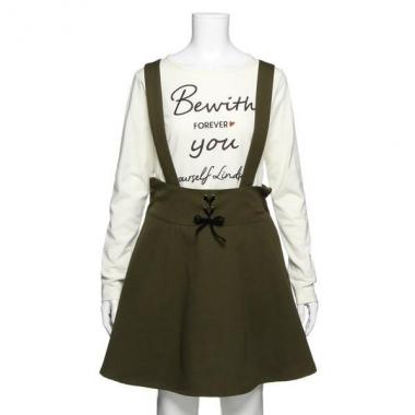 ウエストヨークへレースアップをほどこして、女の子らしいアクセントをプラスしたスカパンです。サスペンダーを取り外して手軽にイメージチェンジできるのがうれしいポイント♪ 両側ポケットつき。アジャスターゴムでウエスト調節可能。※インナーは参考商品です