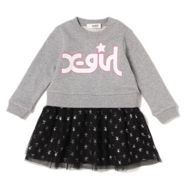 エックスガールステージス X-girl Stages 【50%OFF】ロゴ入り裏毛トレーナーチュールスカートドッキングワンピース