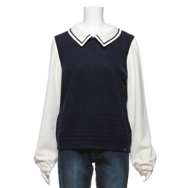 衿つきレイヤード風ニット【50%OFF】