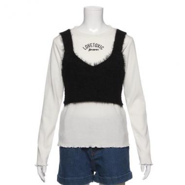 ラブトキシック Lovetoxic 【55%OFF】【ニコラ掲載】フェザーヤーンビスチェ×ロゴ入りTシャツセット