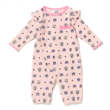 遊園地のアトラクションにキラッキーやその仲間たちをかけ合わせた柄がユニークな2WAYオールです。肩のミニフリルや袖口、ネック周りのパイピングがいいアクセント♪ ブランドロゴはぷっくらとした立体感のあるプリントで仕上げています。内側にはお名前を記入できるタグつきです。