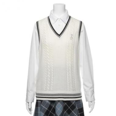 胸元へエッフェル塔モチーフの刺しゅうをほどこして、ブランドらしいアクセントを添えたニットベストです。フチに効かせた配色ラインは表情をキリッと引き締めるアクセント♪ 縦をさりげなく強調するケーブル編みがボディをスッキリと見せてくれます。卒服スタイルにも良くマッチするアイテム。※インナーとボトムスは参考商品です・モデルサイズ168cm・着用サイズ160cm
