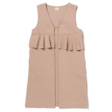 ソフトなポンチ生地を採用して、着心地良く仕上げたジレです。幅広のフリルをあしらった、フェミニンなぺプラムデザインがポイント♪ ロング丈のシルエットは無造作に羽織るだけでサマになります。両方スリットポケットつき。