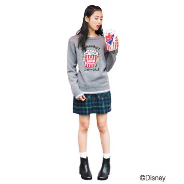 ポップコーンからひょっこりと顔を出すチップ&デール のステッチが愛らしいニットです。刺しゅうで表現したロゴやキャラクターがポイント♪ 袖口や裾にラインをデザインして、メリハリ良く仕上げました。※ボトムスは参考商品です