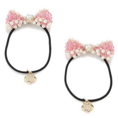 パール調ビーズなどをワイヤーで編み合わせたエレガントな雰囲気ただようヘアポニーです。ブランドイニシャル入りハートプレートがさり気ないアクセント♪ ちょっぴりおめかししたい時にも重宝するアイテムです。