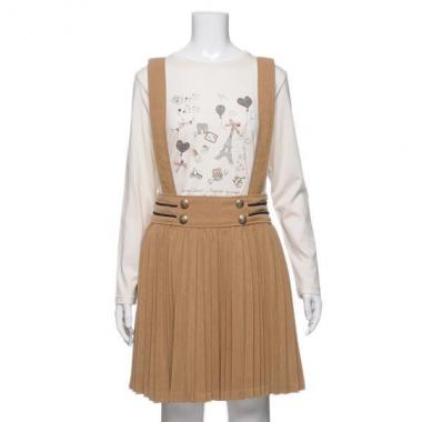 ポンポネット ジュニア pom ponette junior 【50%OFF】サスペンダーつき細プリーツスエード調スカート