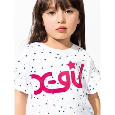 エックスガールステージス X-girl Stages 【50%OFF】スター総柄ロゴ入り袖フリルTシャツ