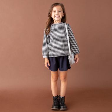 プティマイン petit main ギンガムチェックコットンTシャツ