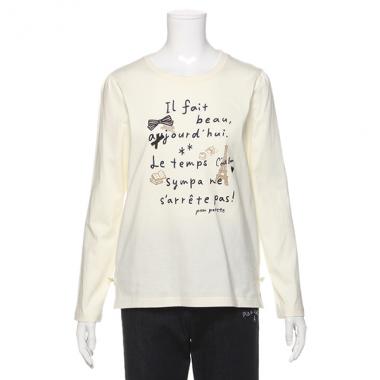 エッフェル塔やリボンを加えたフレンチテイストのTシャツです。ロゴの刺しゅうをあしらいカジュアルな雰囲気に♪ すっきりとしたシルエットで合わせるボトムスを選ばず、デイリーに活躍します。ボトムスは参考商品です。※オフホワイトとライラックはトドラーサイズあり、品番:4883210