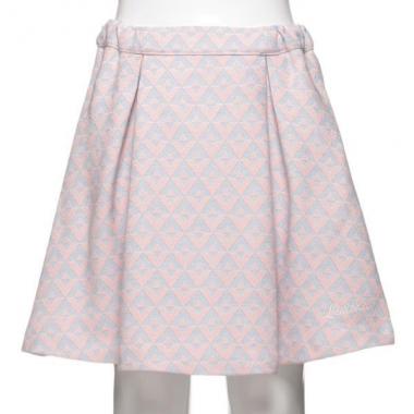 個性あふれる幾何学柄で、スタイルのポイントになるスカートです。タック入りのふんわりとしたシルエットが女の子らしい表情をメイク♪ 淡くやさしいカラーリングもフェミニンムードを加速させます。※アジャスターゴムでウエスト調節可能