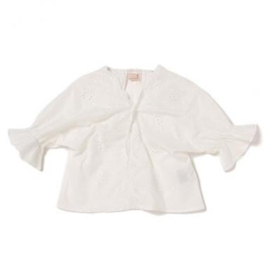 スカラップ刺しゅう入りのレース生地を使用した、フェミニンムードあふれるブラウスです。袖口がふわりと広がる、愛らしいキャンディースリーブもポイント♪ やや透け感のあるコットン生地を採用しており、さわやかに着こなせます。
