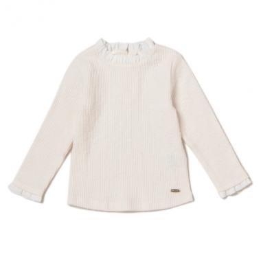 やわらかなシフォンフリルが愛らしい雰囲気を演出するTシャツです。シンプルなデザインに表情をつけた風合いがなんともおしゃれ♪ きらめくロゴ入りプレートが素敵にブランドを印象づけます。バックネックはボタン開き仕様です。
