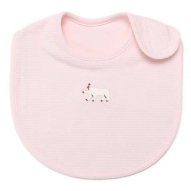 主張の控えめな細ボーダーにシロクマ刺しゅうをプラスしたおしゃれなスタイです。やさしいカラーリングは赤ちゃんにぴったりとなじみます。首周りは面ファスナーで着脱がスムーズなのもポイント♪ ニオイの原因菌の増殖を抑えるポリジン加工で、清潔さをキープします。