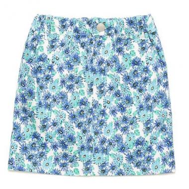 優しいタッチの花柄を全体にあしらったガーリーなボックススカートです。ボタンにはハートの刻印、バックポケットにはリボンとディテールにもこだわりがいっぱい! コーディネートが華やぐ可愛らしいアイテムです。※アジャスターゴムでウエスト調節可能