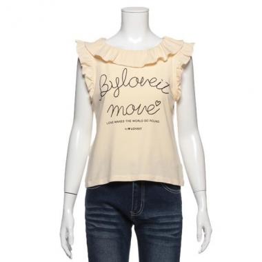 バイ ラビット by LOVEiT 【50%OFF】ロゴプリント入りフリルタンクトップ