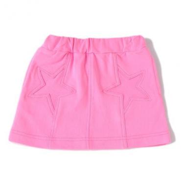 目を引く鮮やかなカラーリングで、スタイルのポイントになるミニ裏毛スカートです。フロントのスター切り替えや、バックの大胆なロゴデザインにポップなムードがただようアイテム♪ 内側にお名前を記入できるタグつきです。両側ポケットつき。
