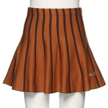 レトロ調のストライプ柄デザインで、着こなしのポイントになるニットスカートです。裾に向かってふわりとフレアに広がるシルエットがスタイルを女の子らしく演出♪ 脚がスッキリとのぞくミニ丈は、レッグウェアとのコーデも楽しめます。