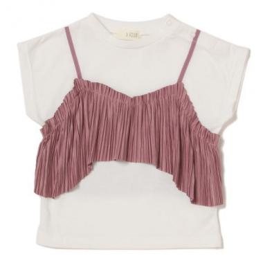 曲線描くヘムデザインが個性的なルックスのキャミレイヤード風Tシャツです。光沢のあるリッチな素材感が、細かいヒダによってより強調されてちょっぴり大人顔な印象。袖口はすっきりとしたフレンチスリーブを採用しました。一枚でおしゃれな重ね着が叶うすぐれものです。※80、90サイズのみ肩開き